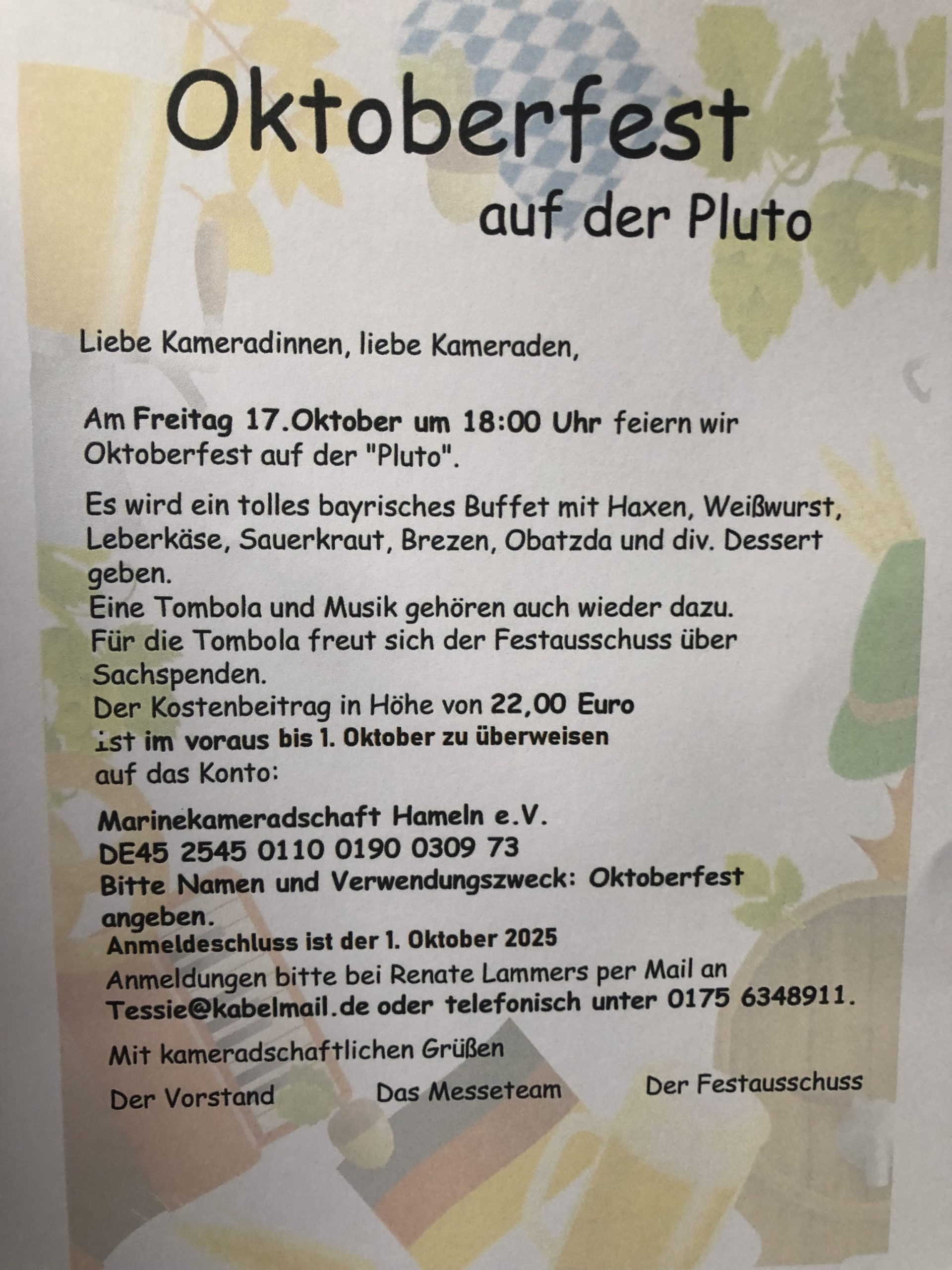 Jeden Monat einmal treffen sich die Mitglieder zu einer Versammlung an Bord des Heimschiffs „Pluto“, einmal im Jahr gibt es das traditionelle Labskausessen. Auch das Sommerfest hat bereits Tradition.