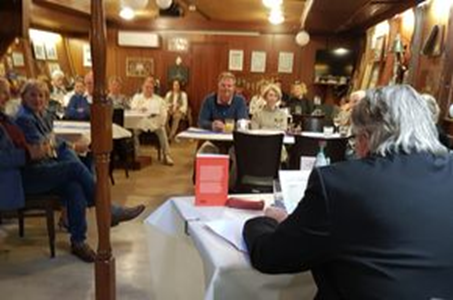 Manfred Ertel, 1950 in Hamburg geboren, war langjähriger politischer Journalist des Nachrichtenmagazins „Der Spiegel“. 2012 wurde Manfred Ertel zusammen mit dem “Spiegel“-Team mit dem renommierten Henri-Nannen-Journalistenpreis ausgezeichnet. 2017 beendete er seine Tätigkeit beim „Spiegel“. In seiner schriftstellerischen Tätigkeit setzt er sich kritisch mit vielen politischen Ereignissen auseinander. Zu Beginn las Manfred Ertel beeindruckend aus seinem Buch „Akte B“ vor. Die Barschel Affäre im Jahr 1987 wurde von ihm aufgedeckt. Spurensuche tief im Dickicht deutsch-deutscher Zeitgeschichte. Gebannt folgten die Zuhörer und Zuhörerinnen der Lesung bei diesem brisanten politischen Ereignis.